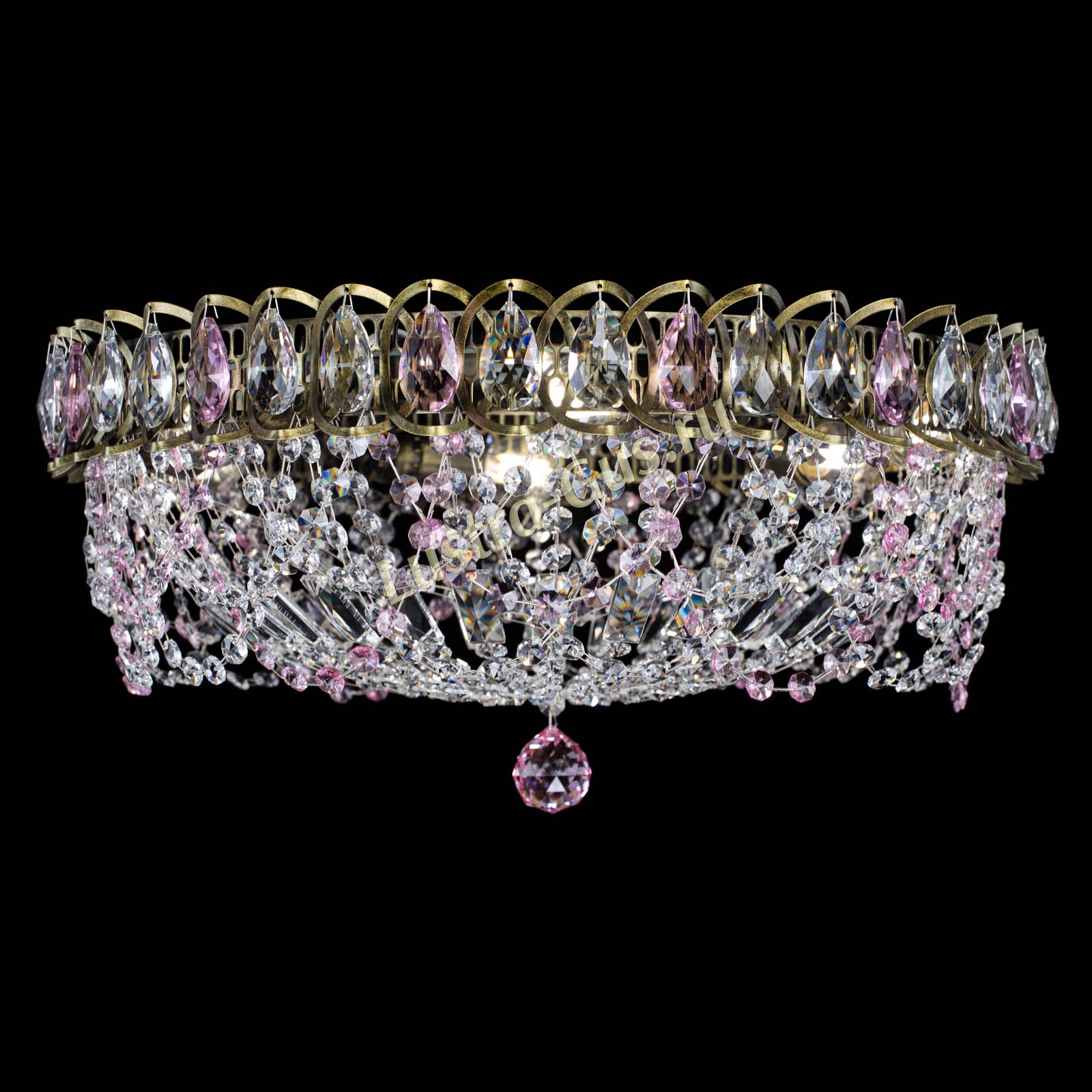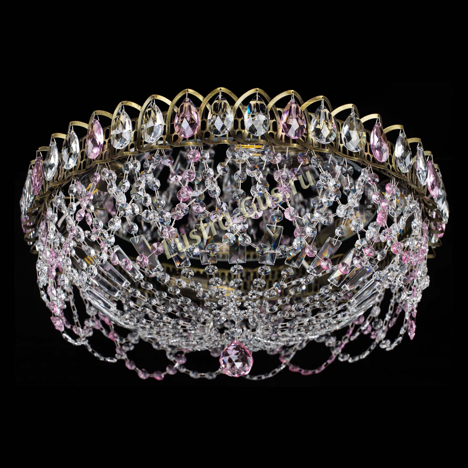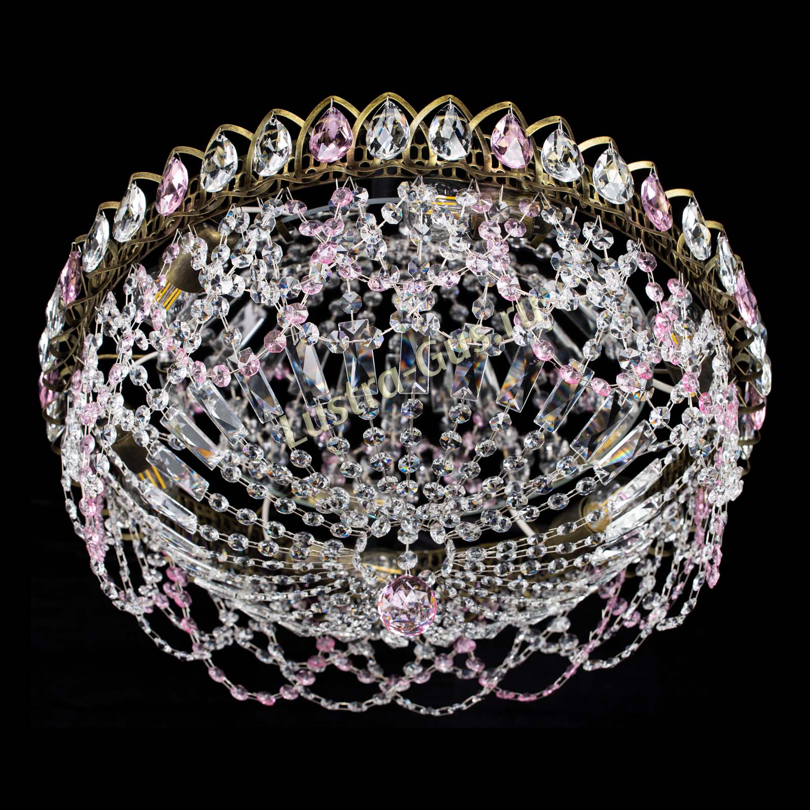 Люстра Хрустальный Каскад Ажур под бронзу Розовая в Саратове