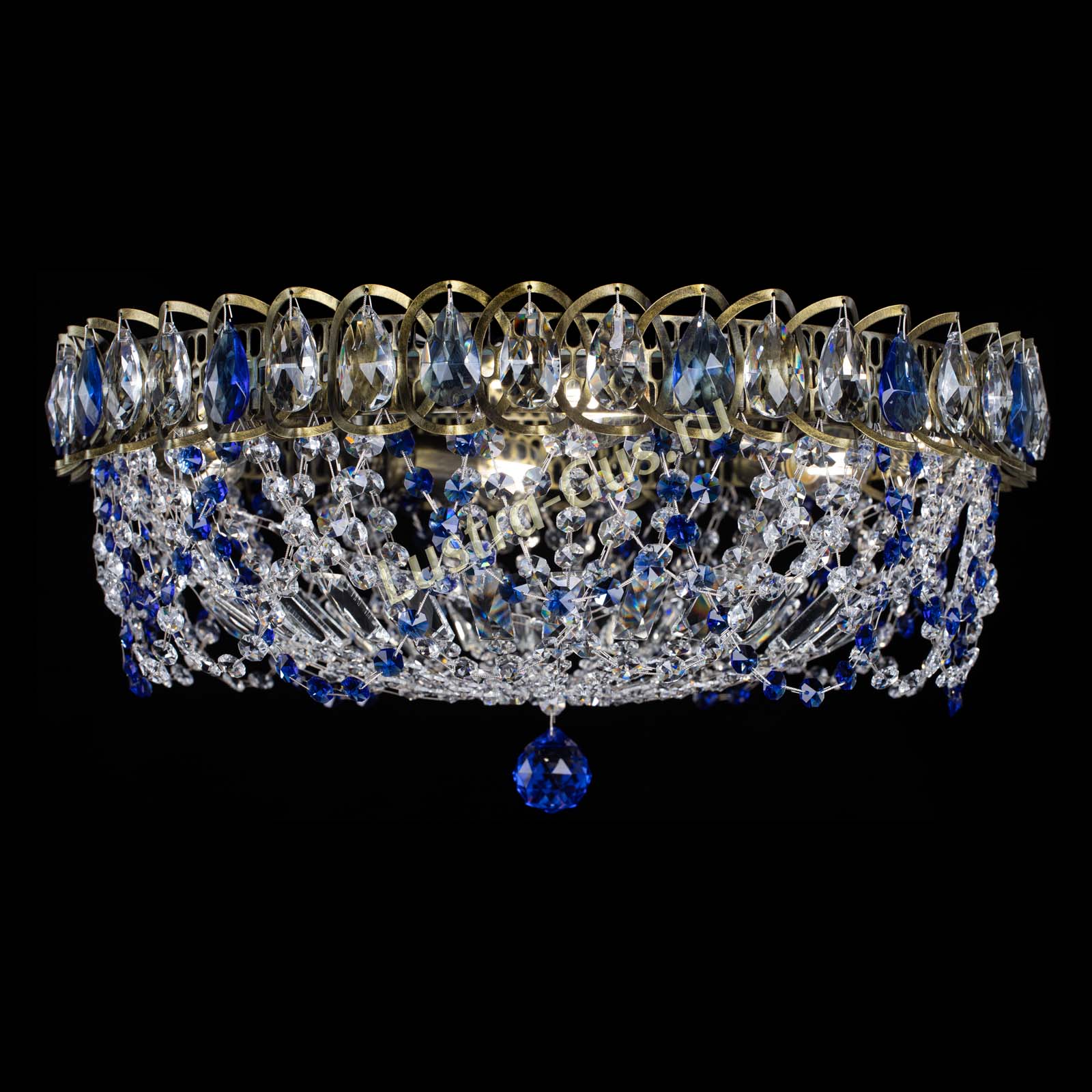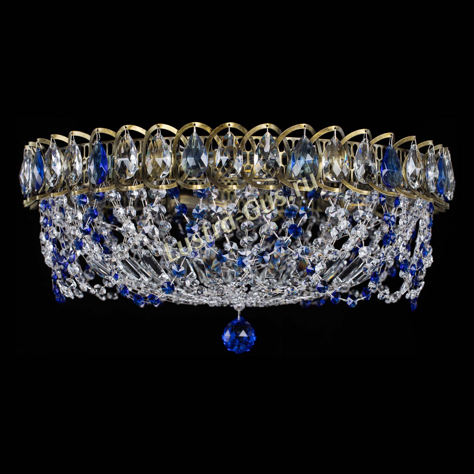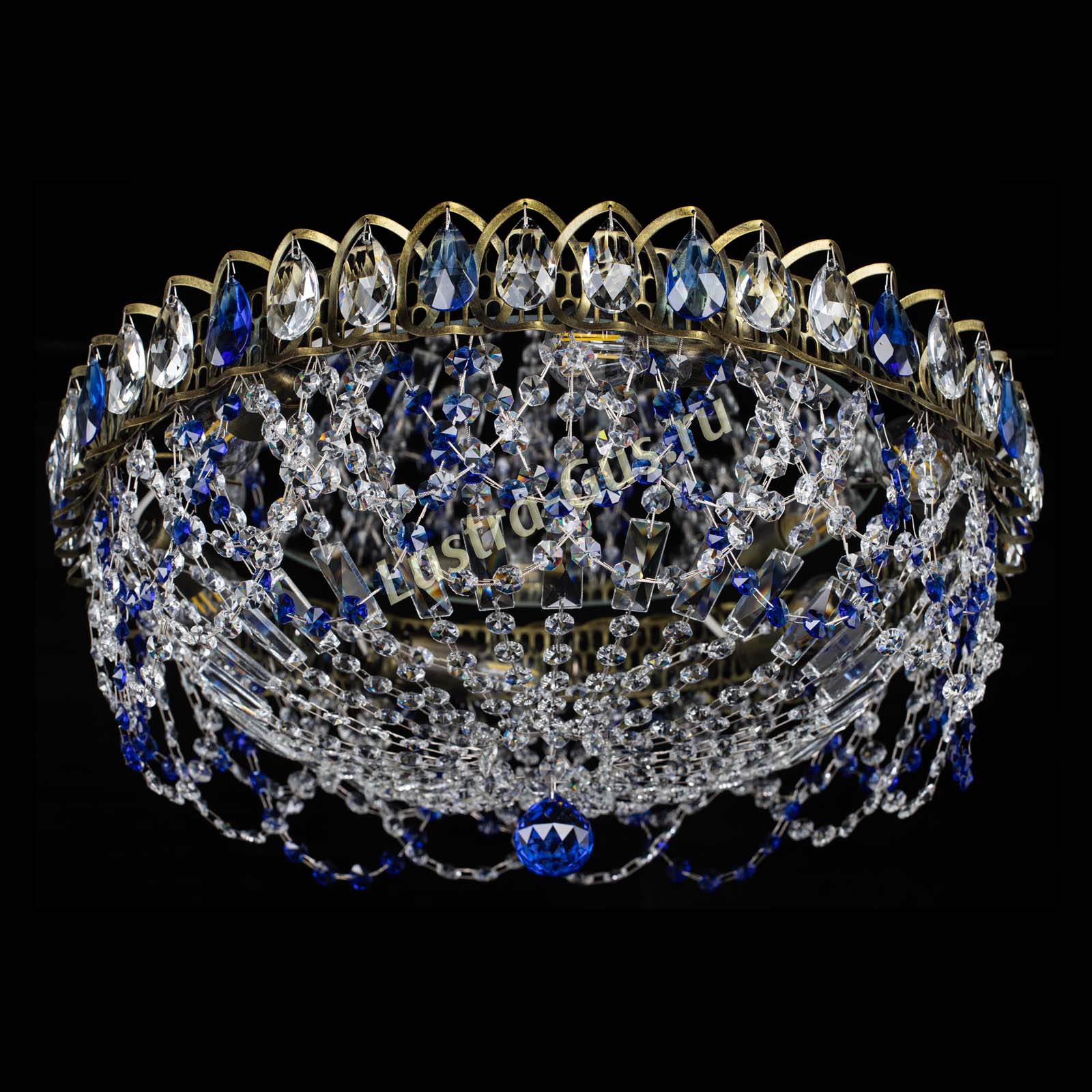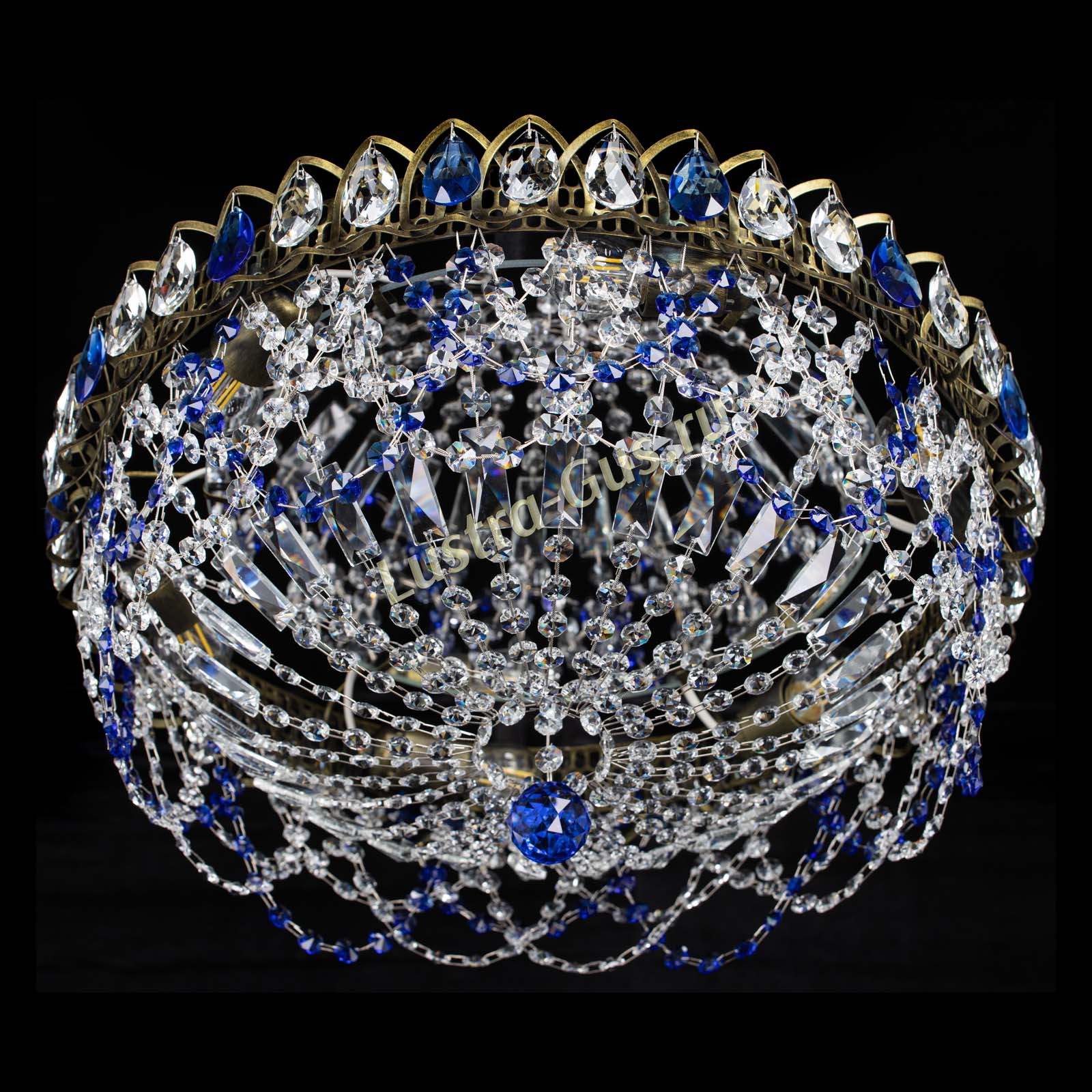 Люстра Хрустальный Каскад Ажур под бронзу Синяя в Саратове