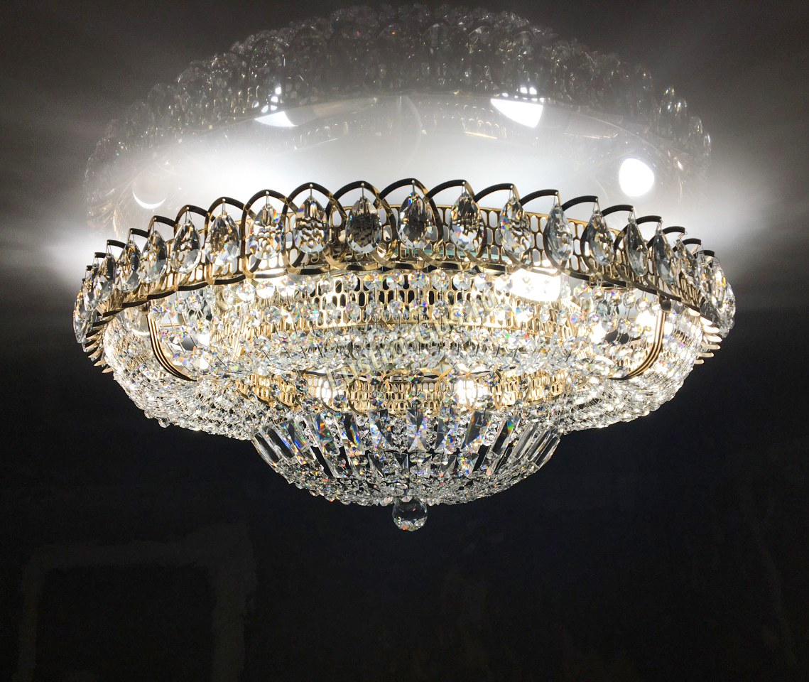 Приобрел люстру Кольцо классика диаметр 700 мм золото. Первое, что хочу сказать, огромное спасибо за оперативность в изготовлении и доставке, так как люстра покупалась маме в подарок на день рождения. Люстра просто шикарная, поставили светодиодные прозрачные лампочки тёплого свечения и люстра заиграла всеми цветами радуги. Немного удивил крепёж одноточечный на крюк, но люстра весит всего 8 кг несмотря на свою внешнюю массивность. Так что этого вполне достаточно. Люстра пришла полностью собранная, в жёсткой упаковке, даже с запасными хрусталиками. Немного вызвал затык по поводу крепления центрального шара, но методом проб и ошибок в течение 10 минут разобрались. А вообще монтаж занял примерно минут 20. Огромное спасибо за хорошую люстру, день рождения удался.