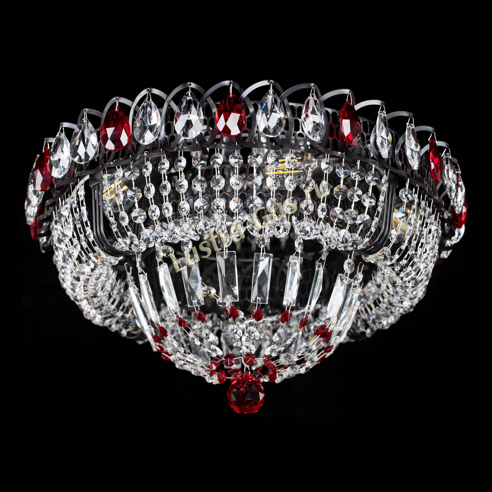 Люстра Кольцо Классика Черная с красными подвесками в Саратове