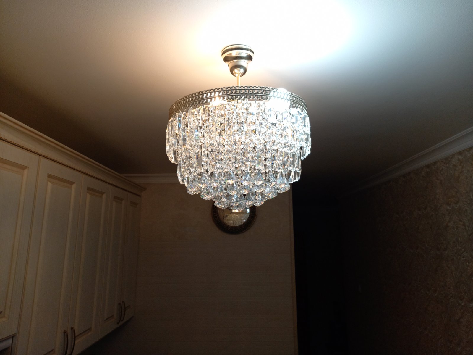 Люстра пришла в Нижний Новгород очень быстро. За 3 дня. Оплата производится после осмотра в пункте выдачи. Сделана очень качественно. Установили на кухню. Смотрится очень красиво. Всем рекомендую люстры этого завода производителя. Спасибо Вам большое. Рассмотрю вопрос покупки еще 2 люстр в комнаты. Также прилагаю фото установленной люстры.
