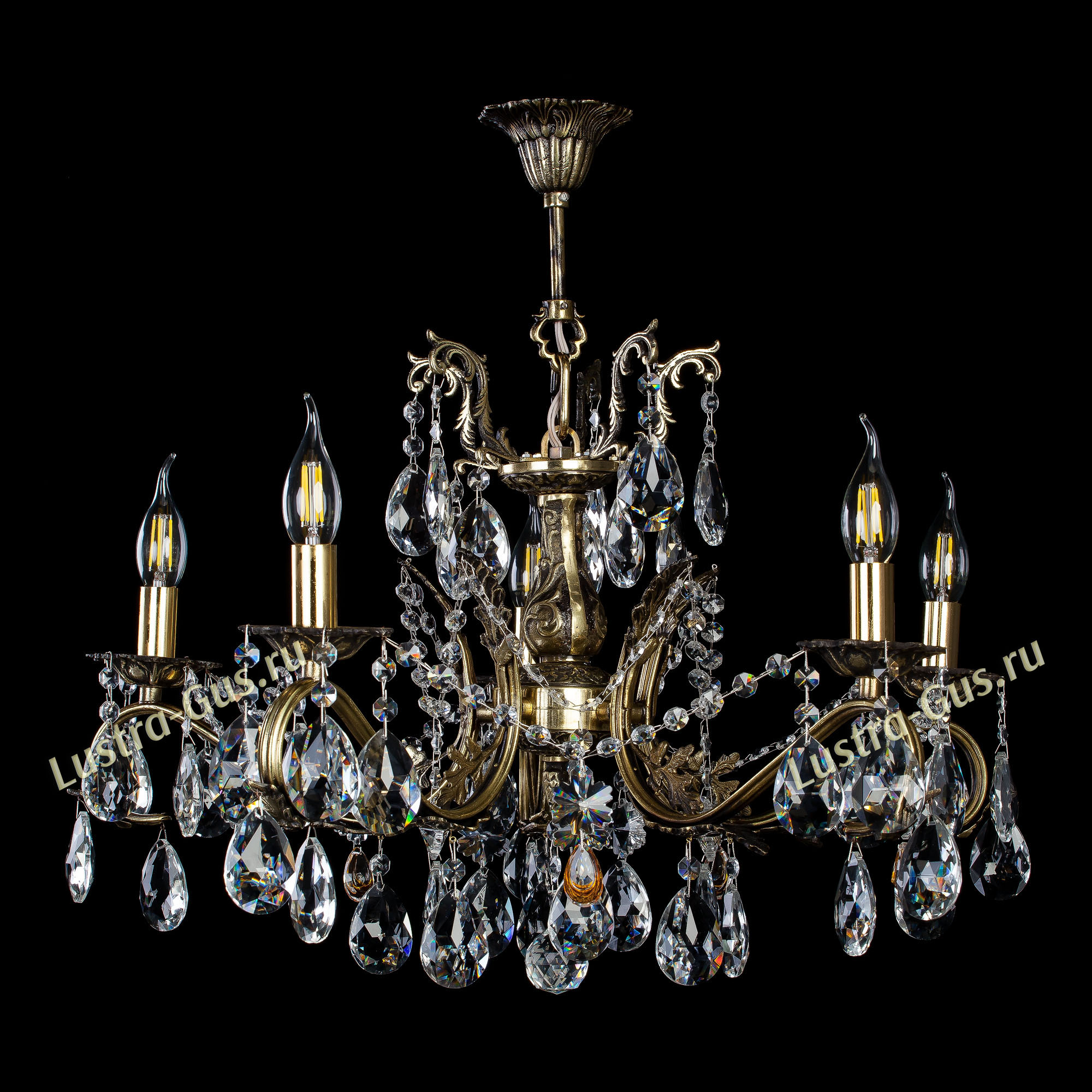 Люстра бронзовая Милана №5 производства Гусь-Хрустальный арт. 103775, потолочный крюк, .