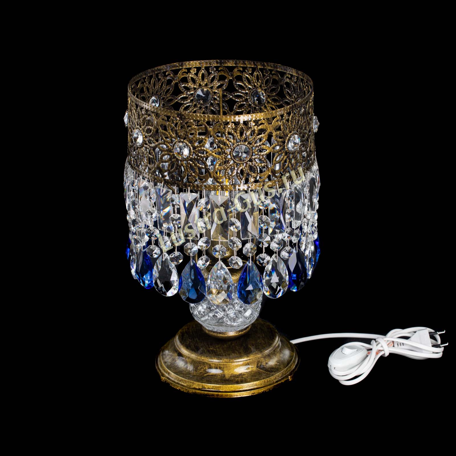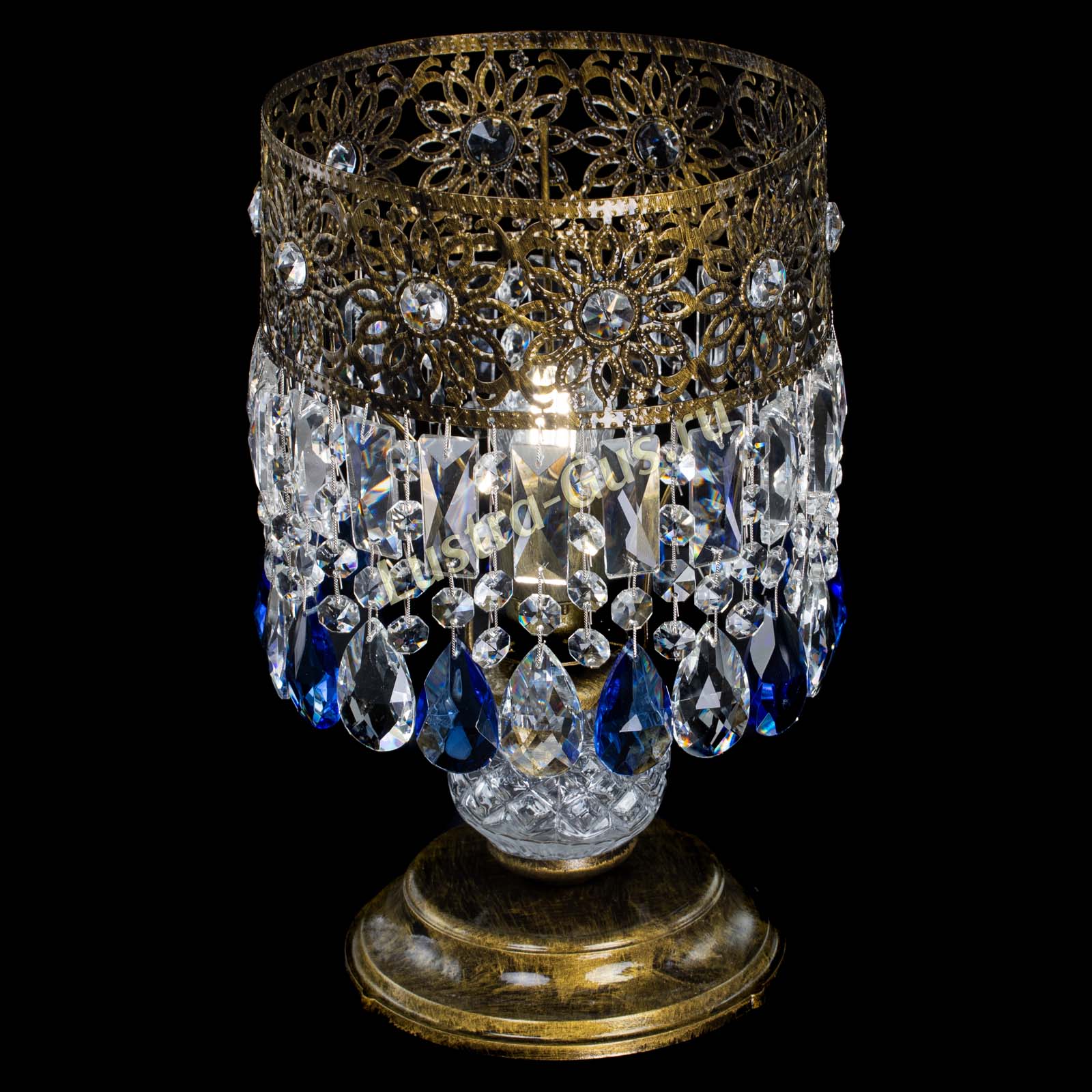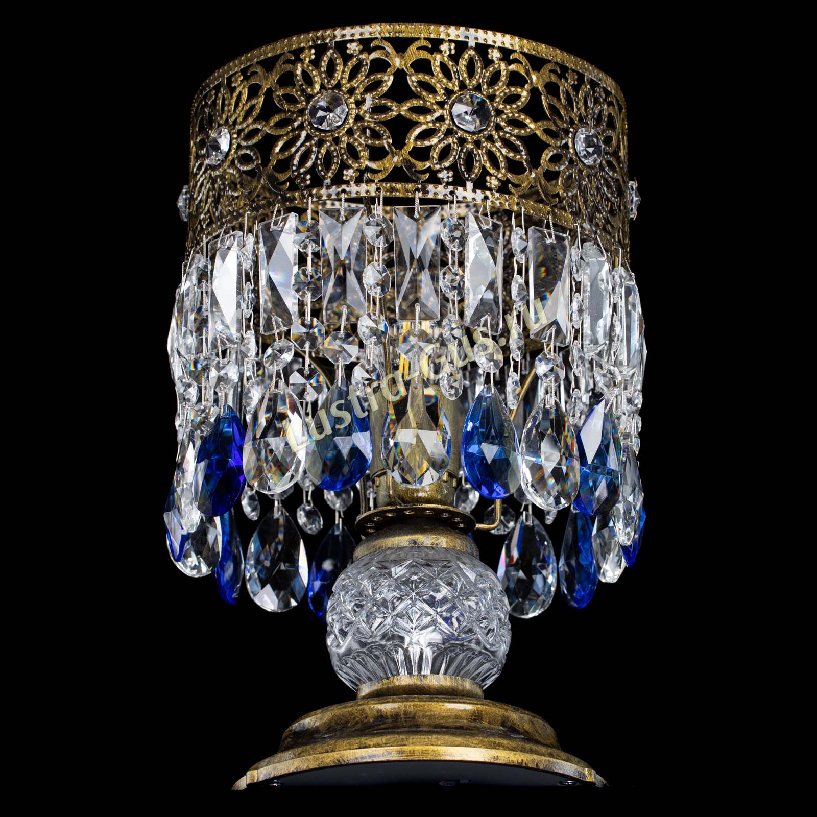 Настольная лампа Восток с пластинками под бронзу Синяя в Саратове