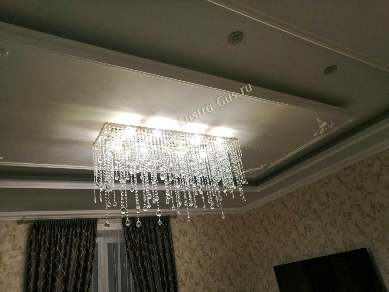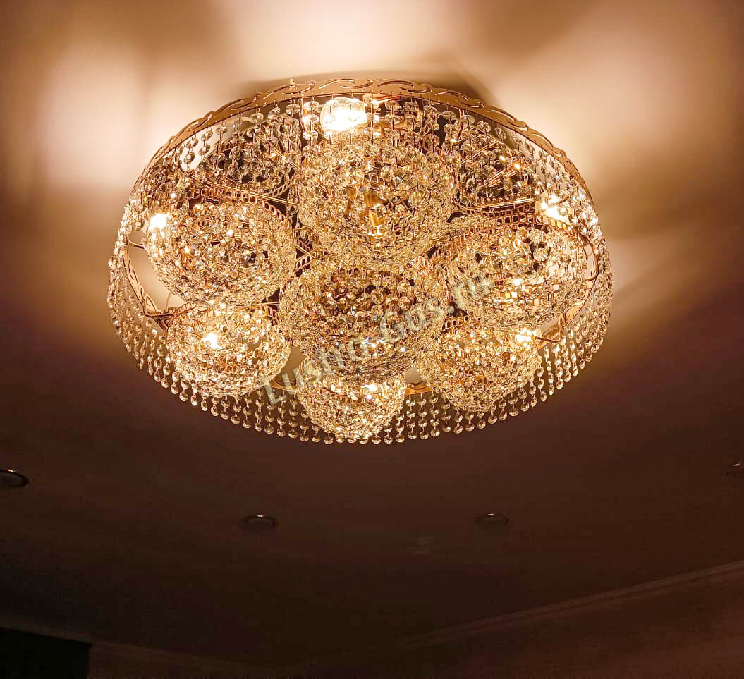 Люстра доставили быстро. Заказали комплект для коридора. Всё приехало в отличном состоянии. Цена просто супер. Хрусталь красиво переливается.